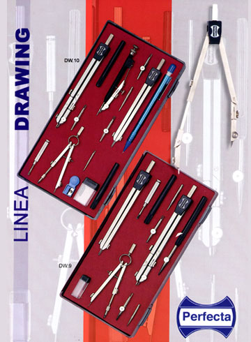 170mms lengh metal Compass, helicoidal rack operated, 50mms further lengthening by means of a special incorporated extension, two knee-joints, diam 3,5mms clutch, non-reflecting silking satin nickel-plated. Packed in plastic cases, individual Compasses in plastic wallet and/or plastic box.